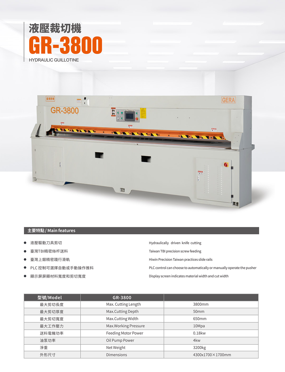 Hydraulically driven knife cutting Taiwan TBl precision screw feeding Hiwin Precision Taiwan practices slide rails PLC control can choose to automatically or manually operate the pusher Display screen indicates material width and cut width